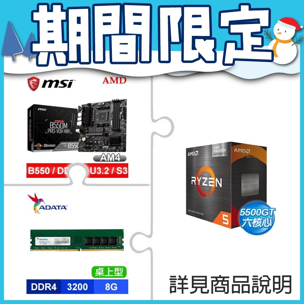 ☆期間限定★ AMD R5 5500GT+微星 B550M PRO-VDH WIFI M-ATX主機板+威剛 DDR4-3200 8G 記憶體