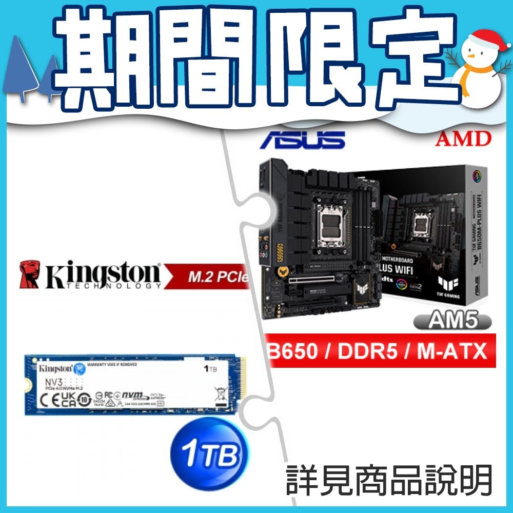 ☆期間限定★ 華碩 TUF GAMING B650M-PLUS WIFI M-ATX+金士頓 NV3 1TB M.2 PCIe 4.0 SSD