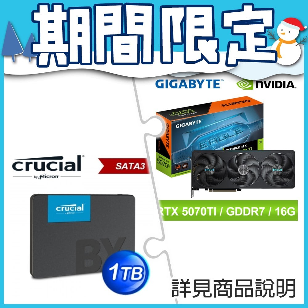 ☆期間限定★ 技嘉 RTX 5070 Ti EAGLE OC SFF 16G 顯示卡+美光 Crucial BX500 1TB 7mm 2.5" S3 SSD