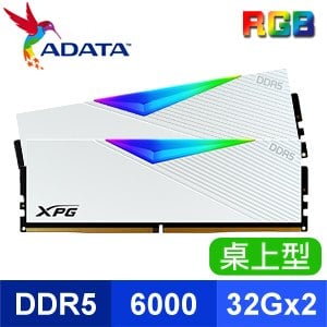 【搭板】ADATA 威剛 XPG LANCER DDR5-6000 32G*2 CL30 RGB炫光電競記憶體(支援XMP3.0、EXPO)《白》