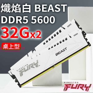 【搭板】Kingston 金士頓 FURY Beast 獸獵者 DDR5-5600 32G*2 CL36 桌上型超頻記憶體(支援XMP3.0、EXPO)《白》(KF556C36BWEK2-64)