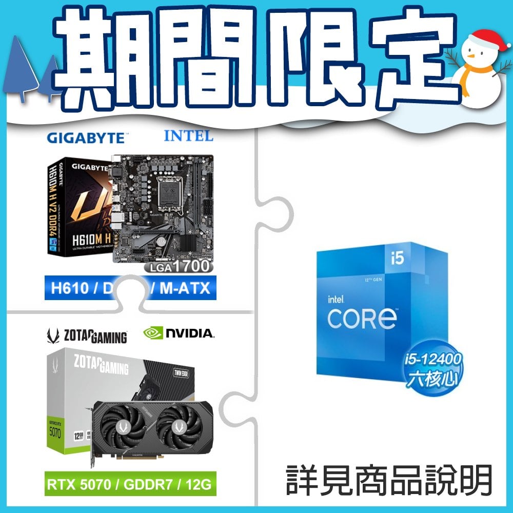 ☆期間限定★ i5-12400+技嘉 H610M H V2 D4 M-ATX主機板+索泰 RTX 5070 Twin Edge 12G 顯示卡