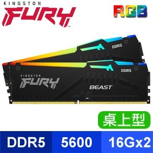 【搭板】Kingston 金士頓 FURY Beast RGB 獸獵者 DDR5-5600 16G*2 CL36 桌上型超頻記憶體(支援XMP3.0、EXPO)《黑》(KF556C36BBEAK2-32)
