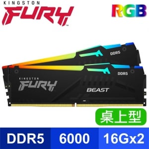 【搭板】Kingston 金士頓 FURY Beast RGB 獸獵者 DDR5-6000 16G*2 CL30 桌上型記憶體(支援XMP3.0、EXPO)《黑》(KF560C30BBEAK2-32)