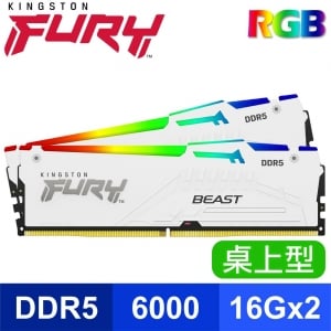 【搭板】Kingston 金士頓 FURY Beast RGB 獸獵者 DDR5-6000 16G*2 CL30 桌上型記憶體(支援XMP3.0、EXPO)《白》(KF560C30BWEAK2-32)