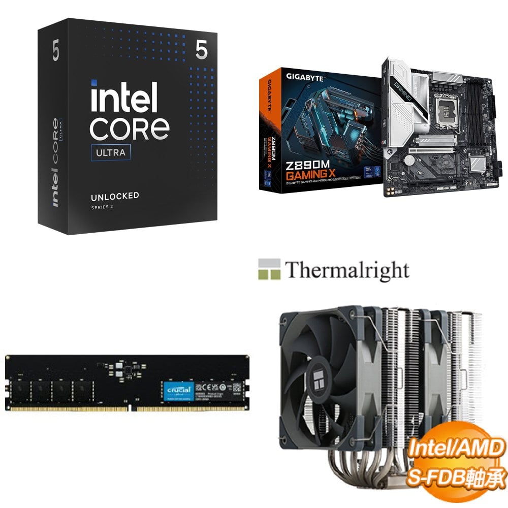 ☆期間限定★ Intel Core Ultra 5 245K+技嘉 Z890M GAMING X D5 MATX主機板+美光 Crucial DDR5-5600 16G 記憶體+利民 Peerless Assassin 120 雙塔散熱器