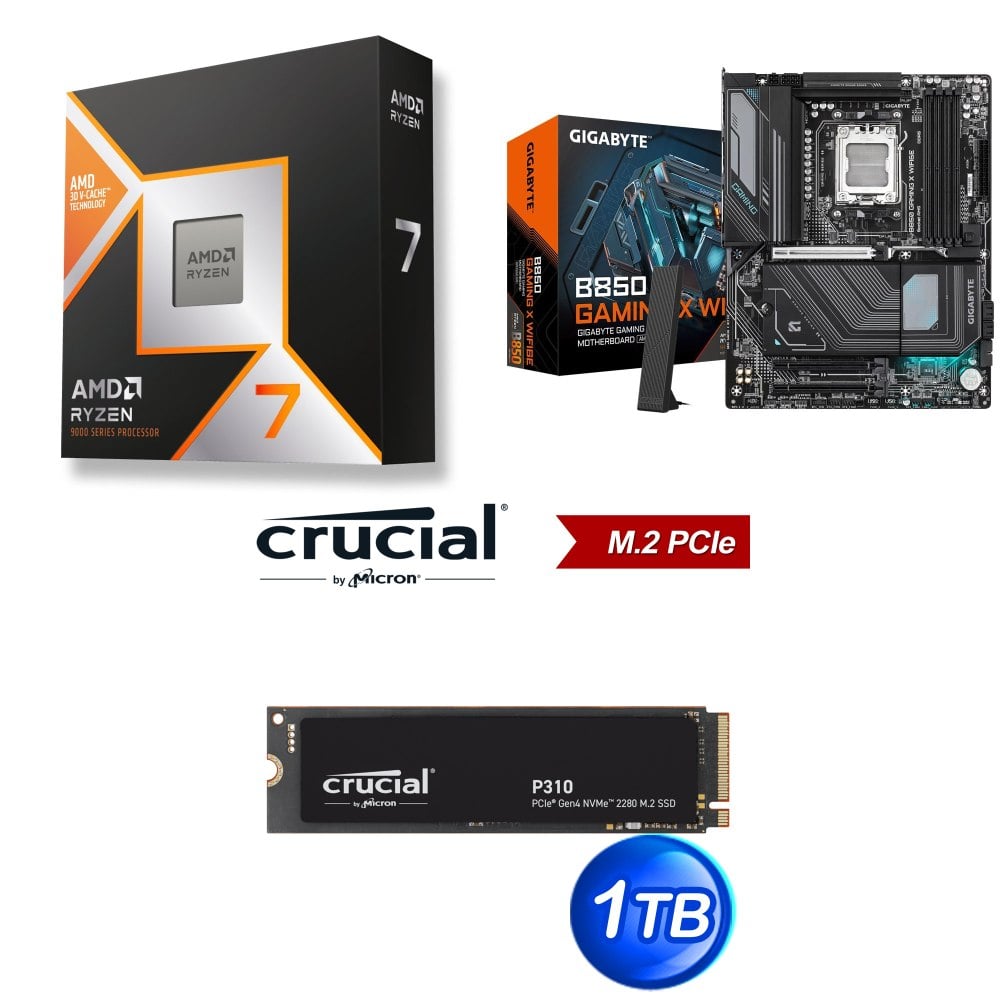 ☆期間限定★ AMD R7 9800X3D+技嘉 B850 GAMING X WIFI6E ATX 主機板+美光 Crucial P310 1TB M.2 SSD BULK