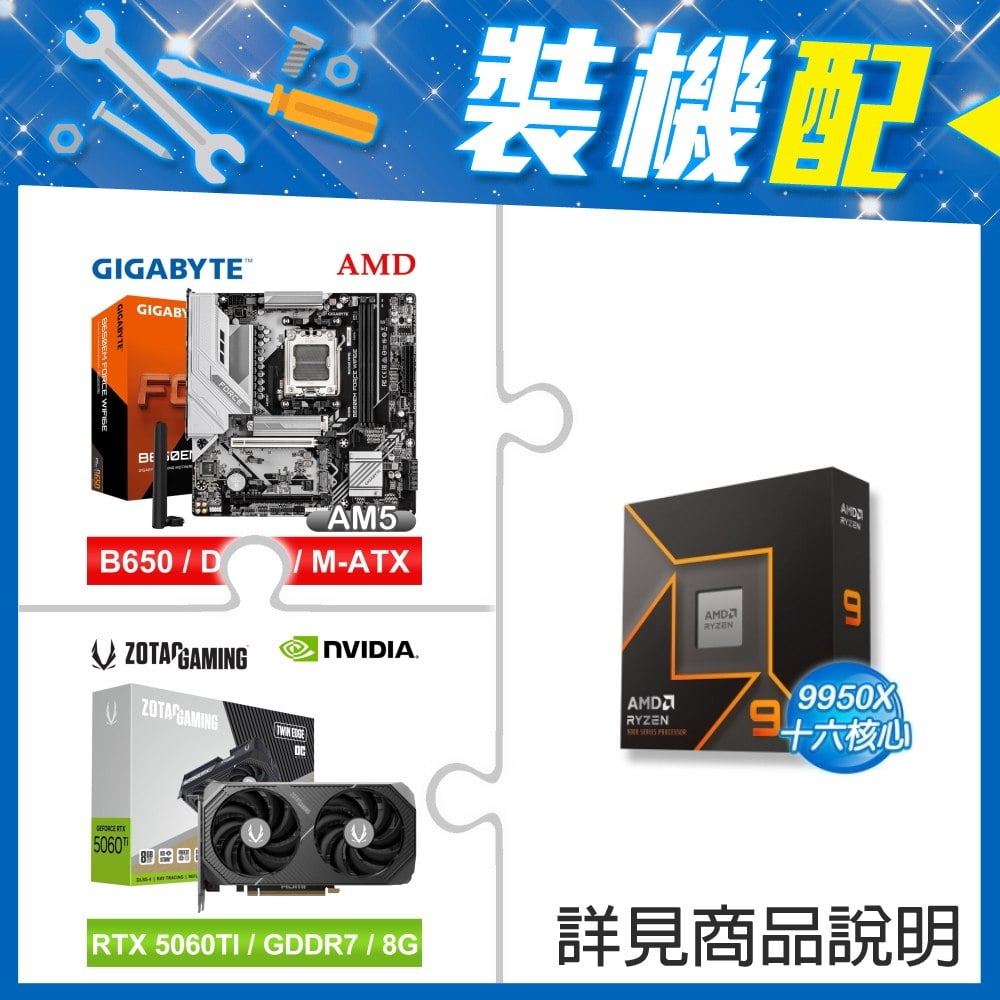 ☆裝機配★ AMD R9 9950X+技嘉 B650EM FORCE WIFI6E MATX主機板+索泰 RTX 5060 TI 8GB Twin Edge OC 顯示卡