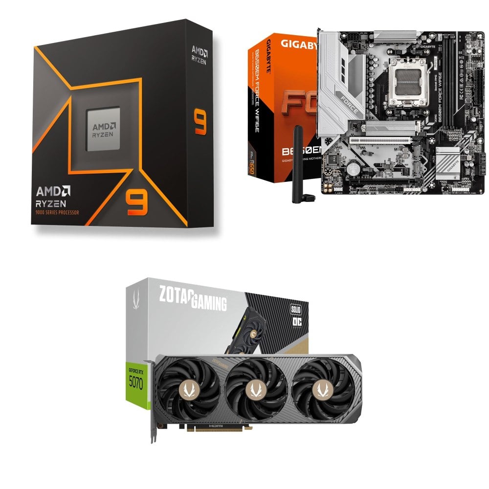 ☆裝機配★ AMD R9 9950X+技嘉 B650EM FORCE WIFI6E MATX主機板+索泰 RTX 5070 SOLID OC 12G 顯示卡