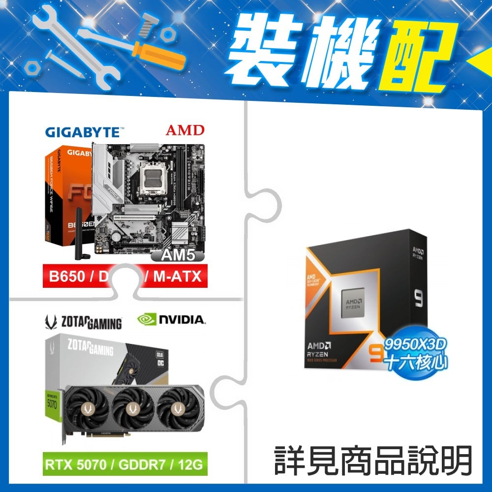 ☆裝機配★ AMD R9 9950X3D+技嘉 B650EM FORCE WIFI6E MATX主機板+索泰 RTX 5070 SOLID OC 12G 顯示卡
