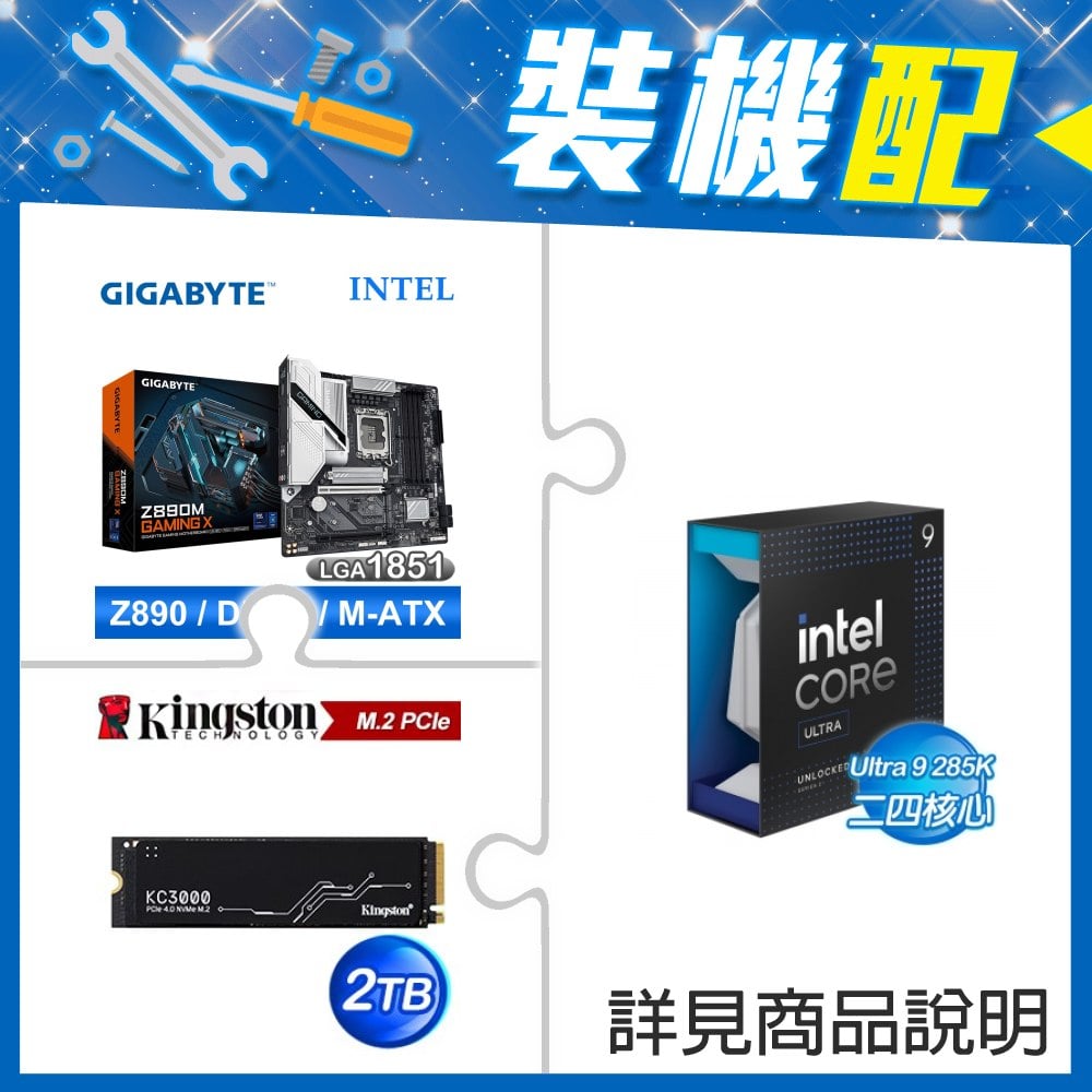 ☆裝機配★ Core U9 285K+技嘉 Z890M GAMING X D5 MATX主機板+金士頓 KC3000 2TB PCIe 4.0 NVMe M.2 SSD