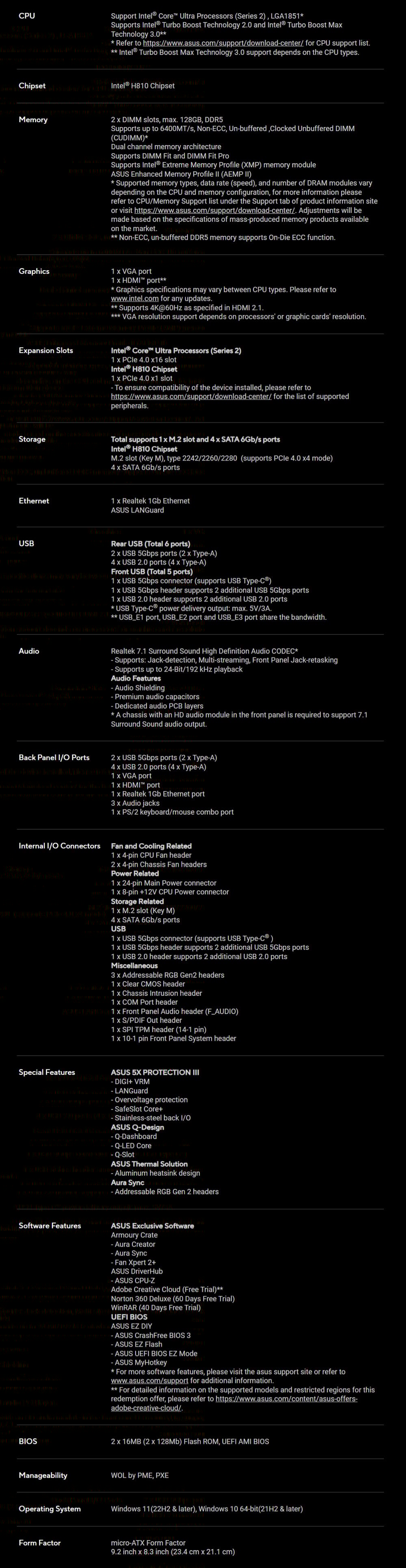 ASUS 華碩 H810M-E-CSM D5 LGA1851主機板(MATX/3+1年保)