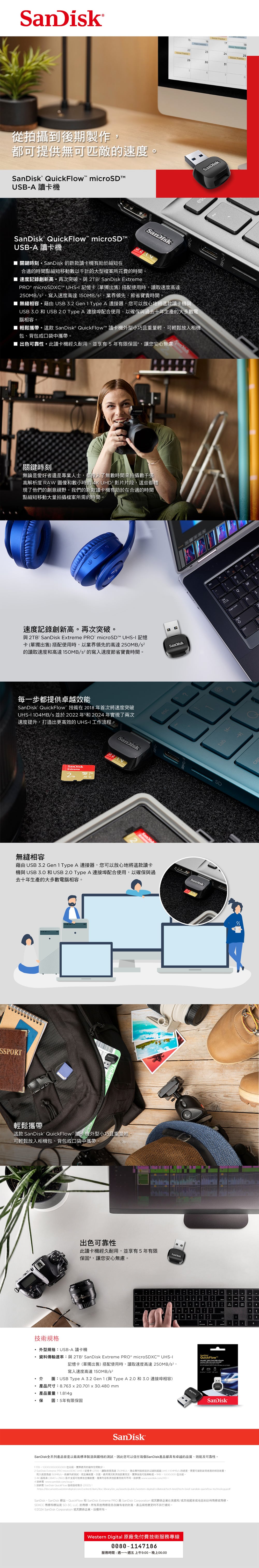 - 輕鬆攜帶。這款 SanDisk QuickFlow™ 讀卡機外型小巧且重量輕,可輕鬆放入相機包、背包或口袋中攜帶