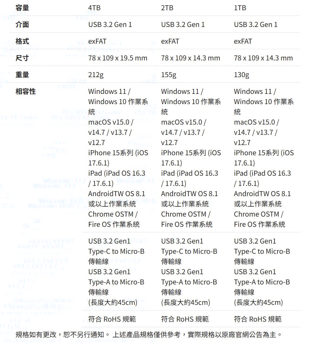 • ★傳輸速度會依容量、測試平台的硬體、測試軟體及作業系統的不同而有所差異