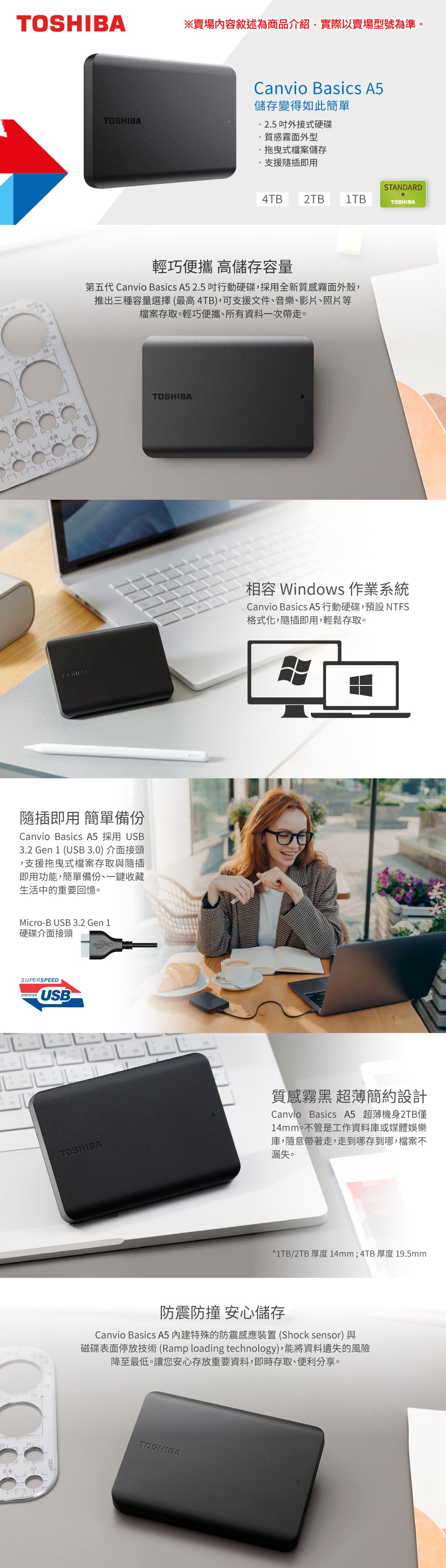 TOSHIBA 東芝 Canvio Basics A5 1TB 2.5吋外接硬碟