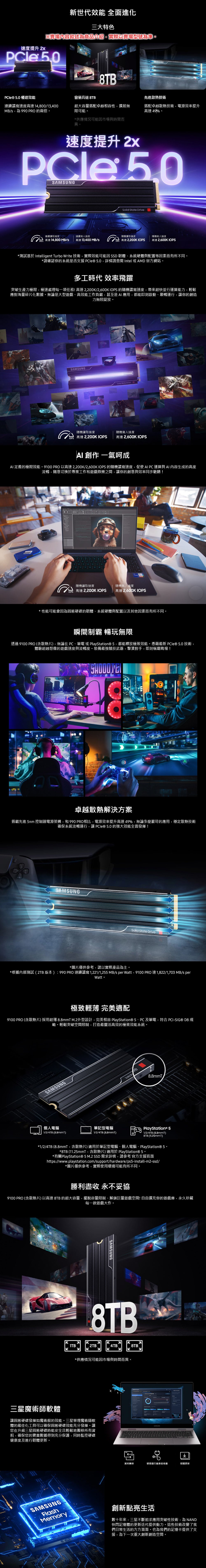 Samsung 三星 9100 PRO w 散熱片 8TB PCIe M.2 SSD(五年保)