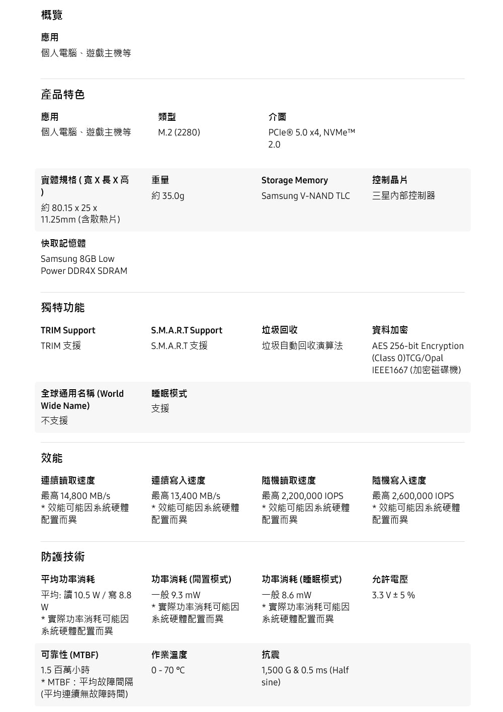 Samsung 三星 9100 PRO 2TB PCIe M.2 SSD(含散熱片)【五年保】