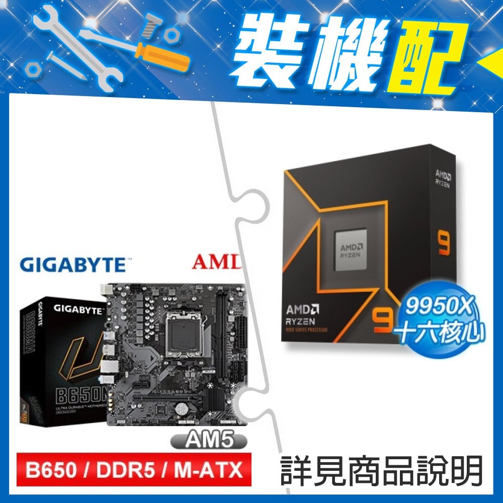 ☆裝機配★ AMD R9 9950X+技嘉 B650M H MATX主機板