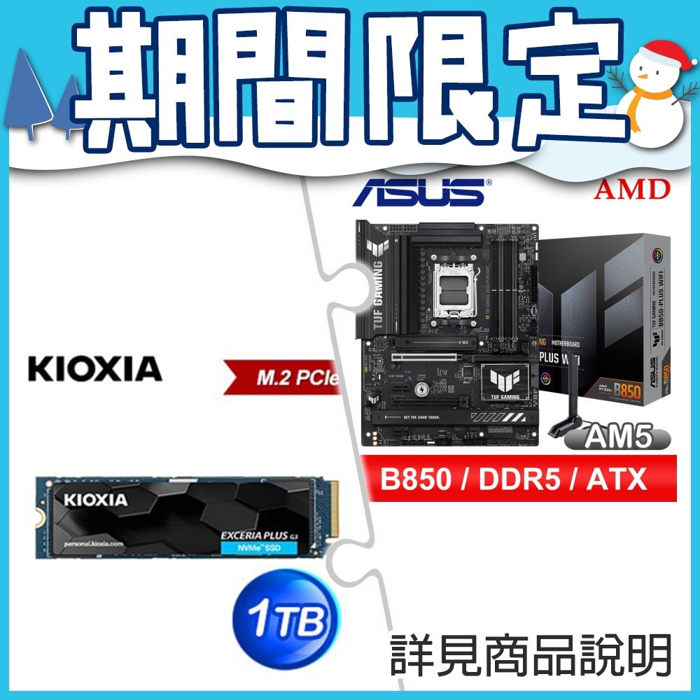 ☆期間限定★ 華碩 TUF GAMING B850-PLUS WIFI ATX主機板+鎧俠 EXCERIA PLUS G3 1TB M.2 PCIe SSD