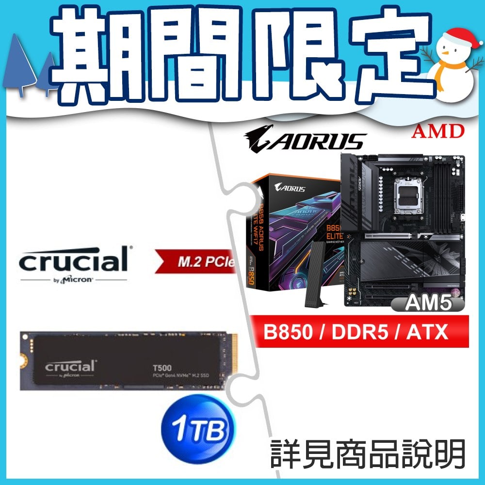 ☆期間限定★ 技嘉 B850 AORUS ELITE WIFI7 ATX主機板+美光 Crucial T500 1TB M.2 PCIe 4.0 SSD
