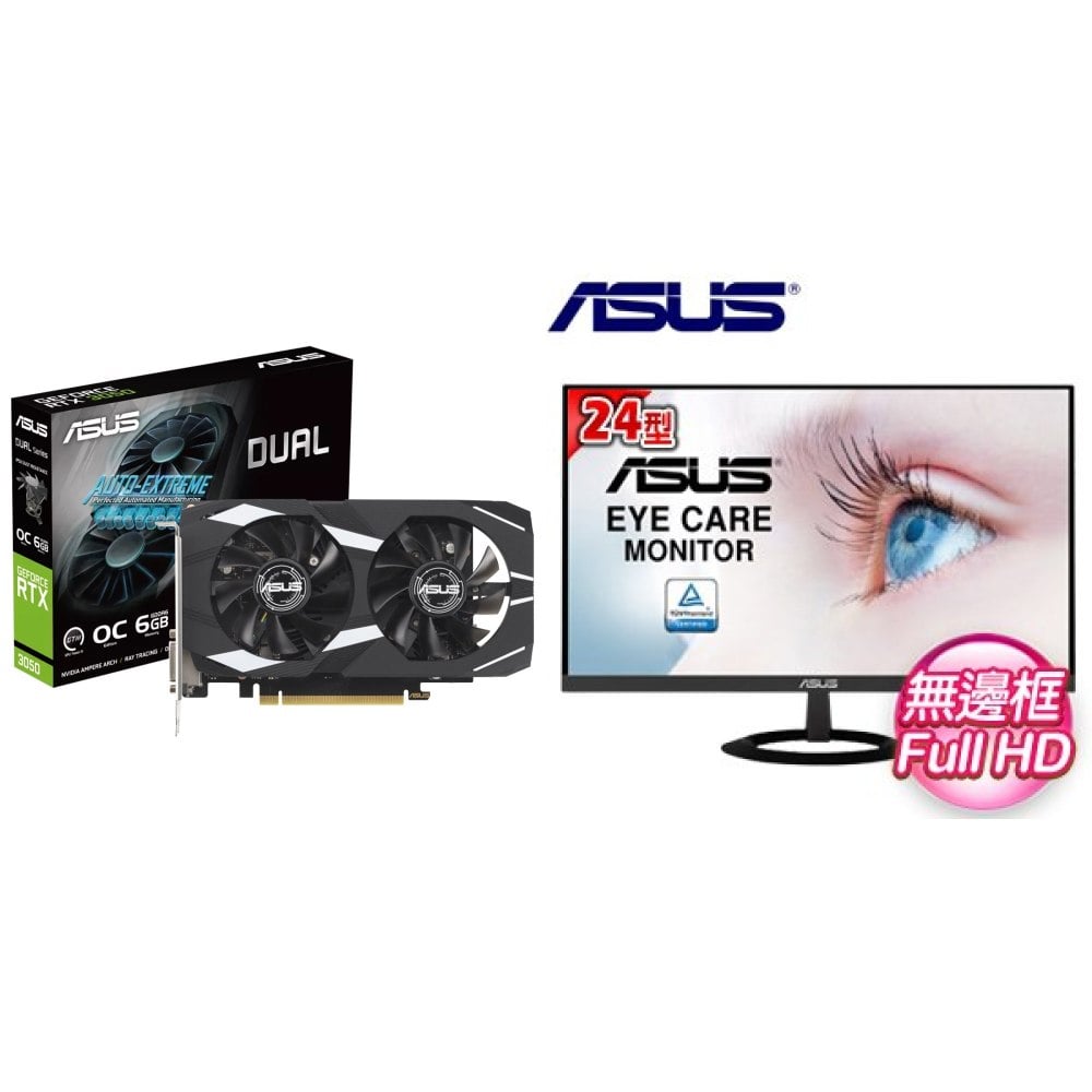 ☆期間限定★ 華碩 DUAL-RTX3050-O6G 顯示卡+華碩 VZ249HE 24型 IPS 低藍光螢幕