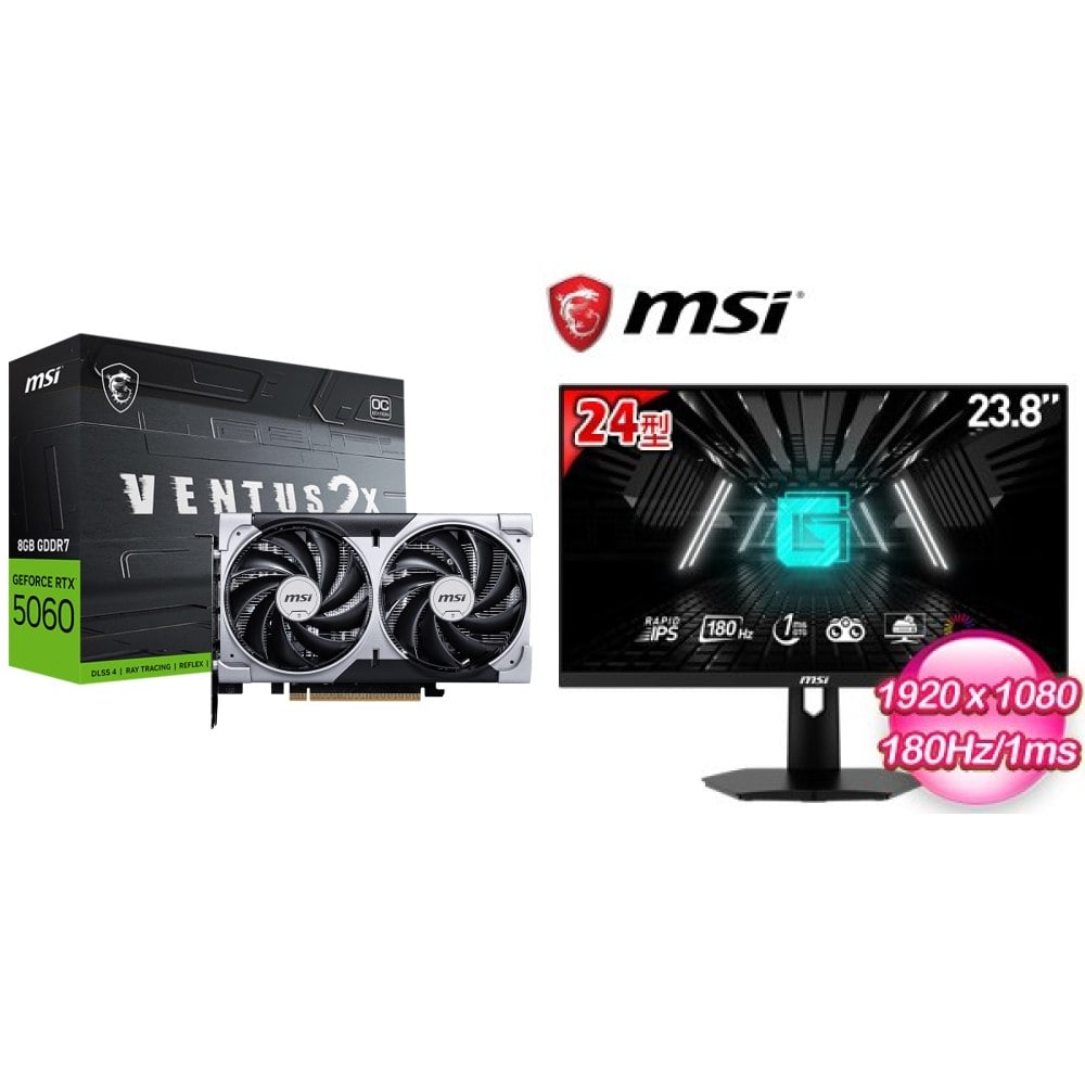 ☆期間限定★ 微星 RTX 5060 8G VENTUS 2X OC 顯示卡+微星 G244F E2 24型 平面電競寬螢幕