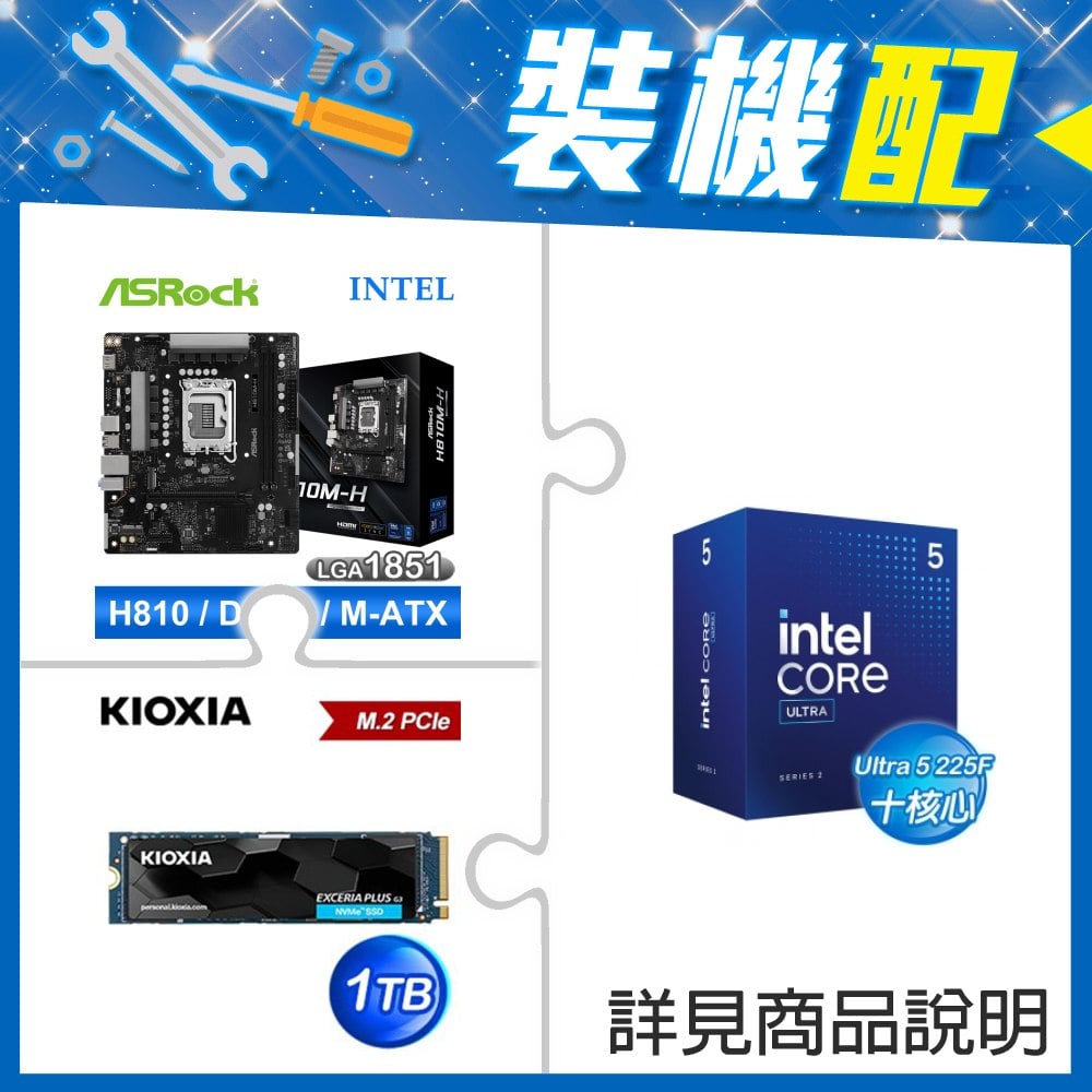 ☆裝機配★ Core U5 225F+華擎 H810M-H MATX主機板+鎧俠 EXCERIA PLUS G3 1TB PCIe Gen4x4 SSD