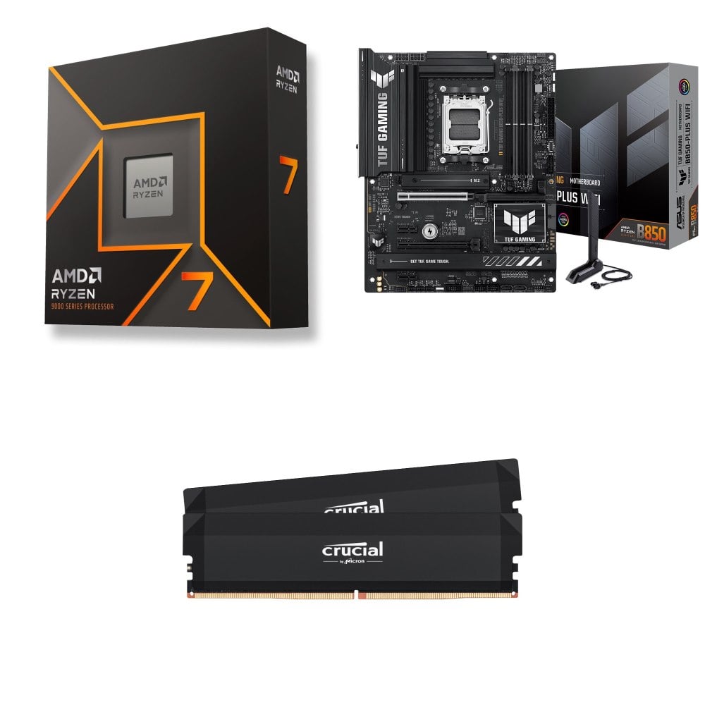 ☆期間限定★ AMD R7 9700X+華碩 TUF GAMING B850-PLUS WIFI ATX主機板+美光Crucial PRO DDR5-6000 16G*2黑 記憶體