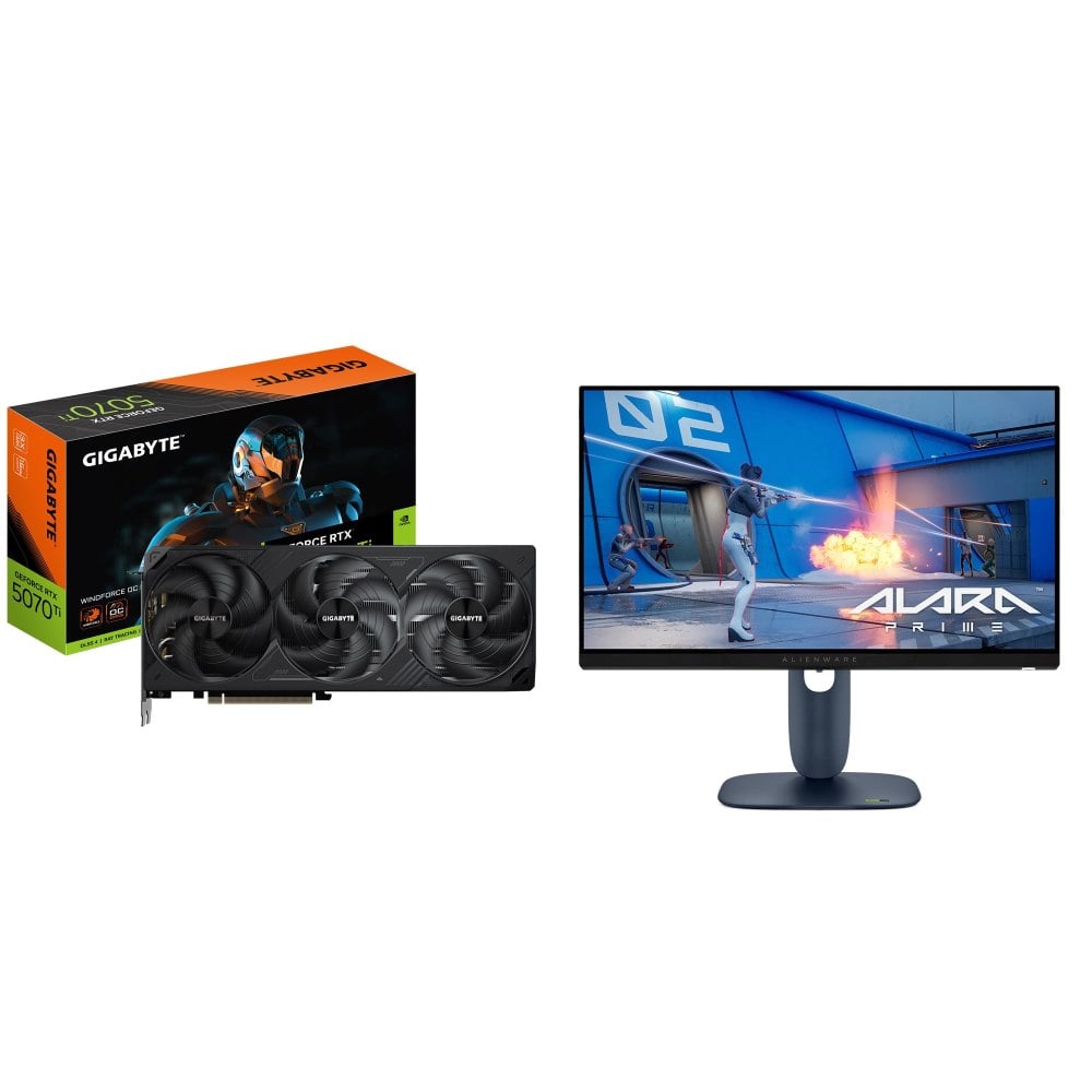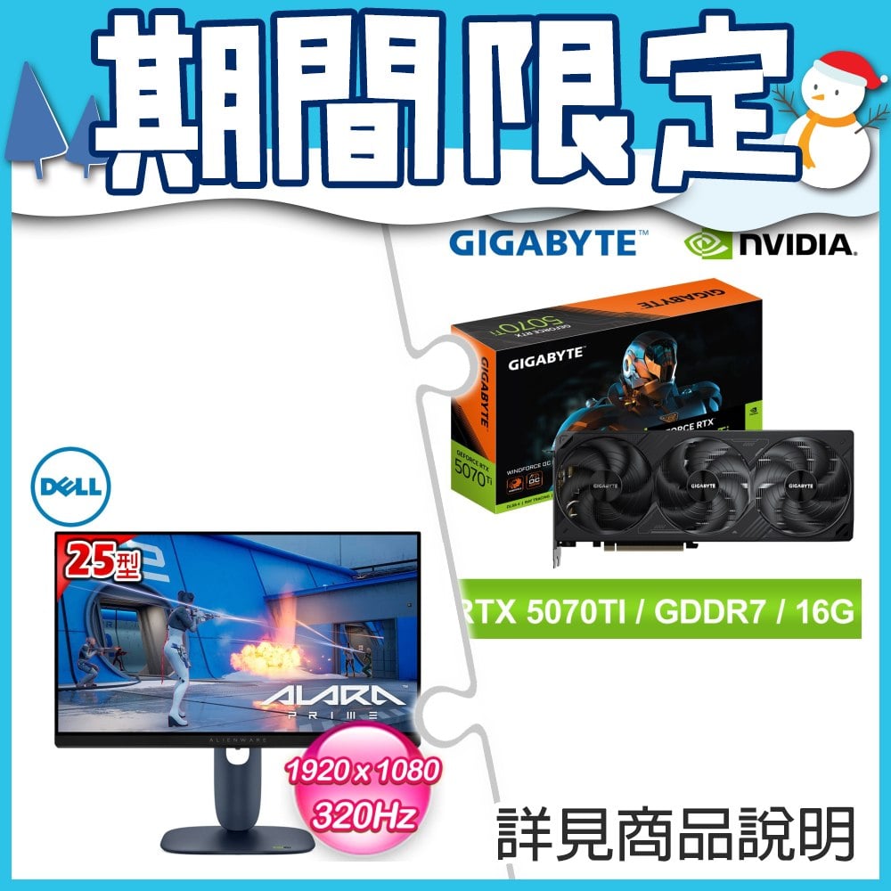 ☆期間限定★ 技嘉 RTX 5070 Ti WINDFORCE OC SFF 16G 顯示卡+DELL AW2525HM 四年保 24型 螢幕 ★送DELL AW620M Alienware遊戲專用無線滑鼠 黑