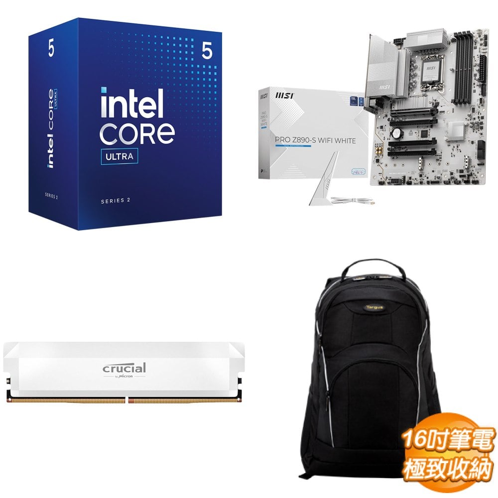 ☆期間限定★ Intel Core Ultra 5 225+微星 PRO Z890-S WIFI WHITE D5 ATX主機板+美光 Crucial PRO DDR5 6000 16G CL36 白 記憶體(X2)★送Targus 16"後背包