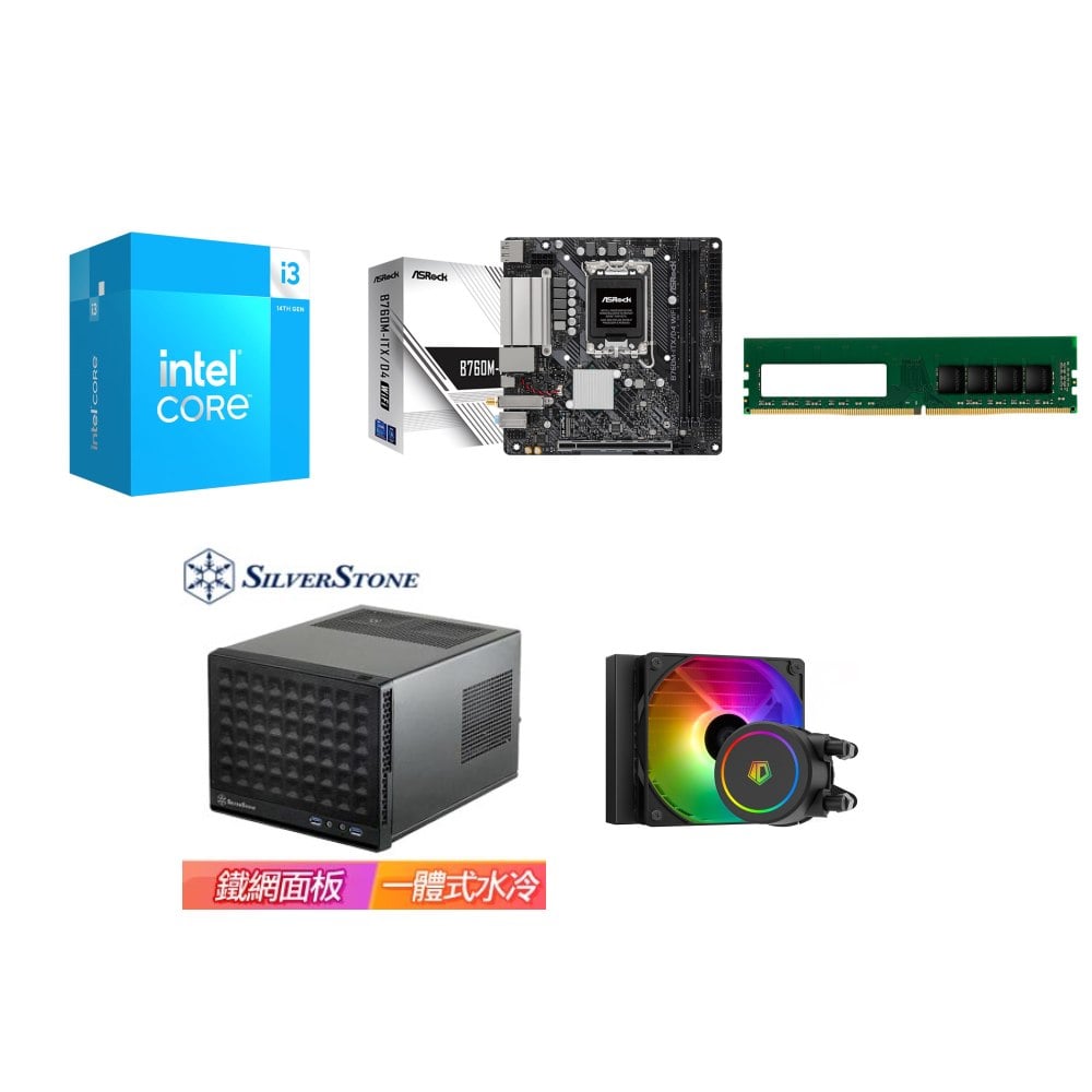 ☆期間限定★ i3-14100+華擎 B760M-ITX D4 WiFi ITX主機板+威剛 DDR4-3200 8G 記憶體+銀欣 SG13 ITX機殼《黑》 ★送ID-COOLING FROSTFLOW X 120 ARGB 水冷