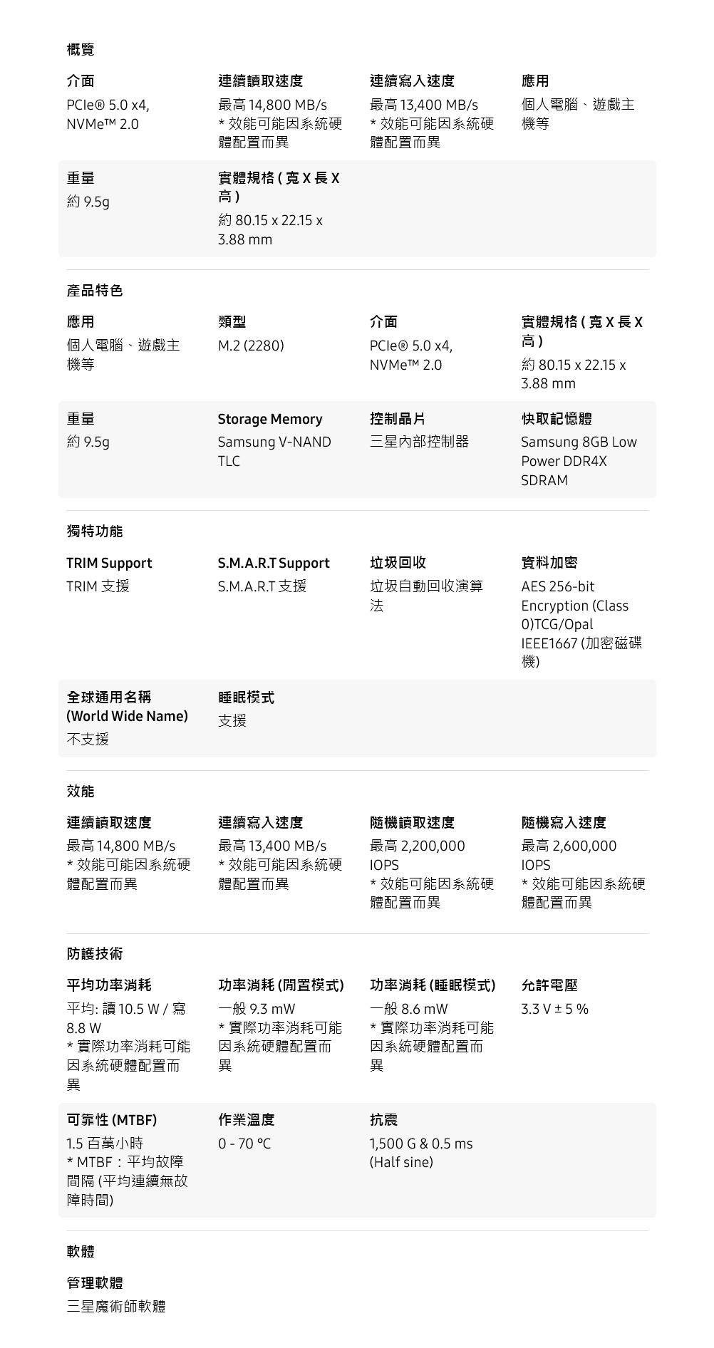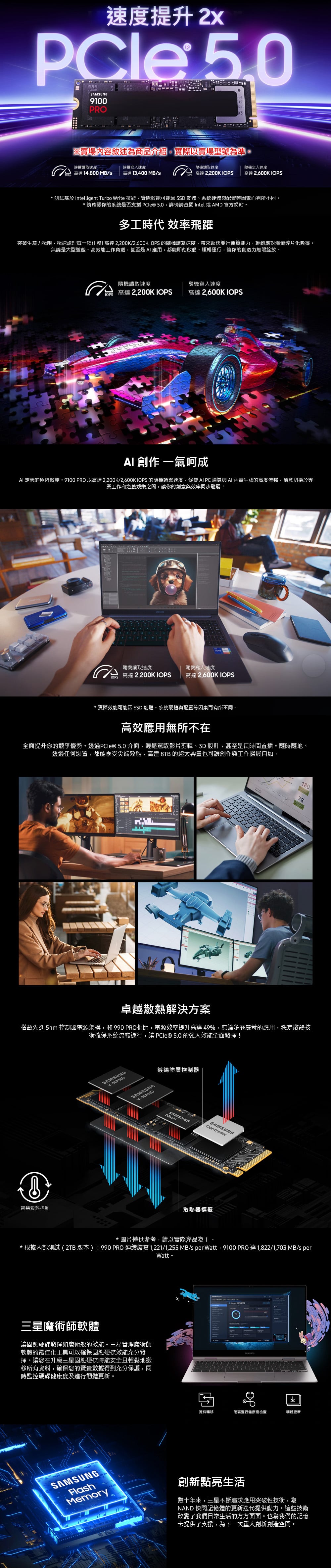 Samsung 三星 9100 PRO 2TB PCIe M.2 SSD(含散熱片)【五年保】