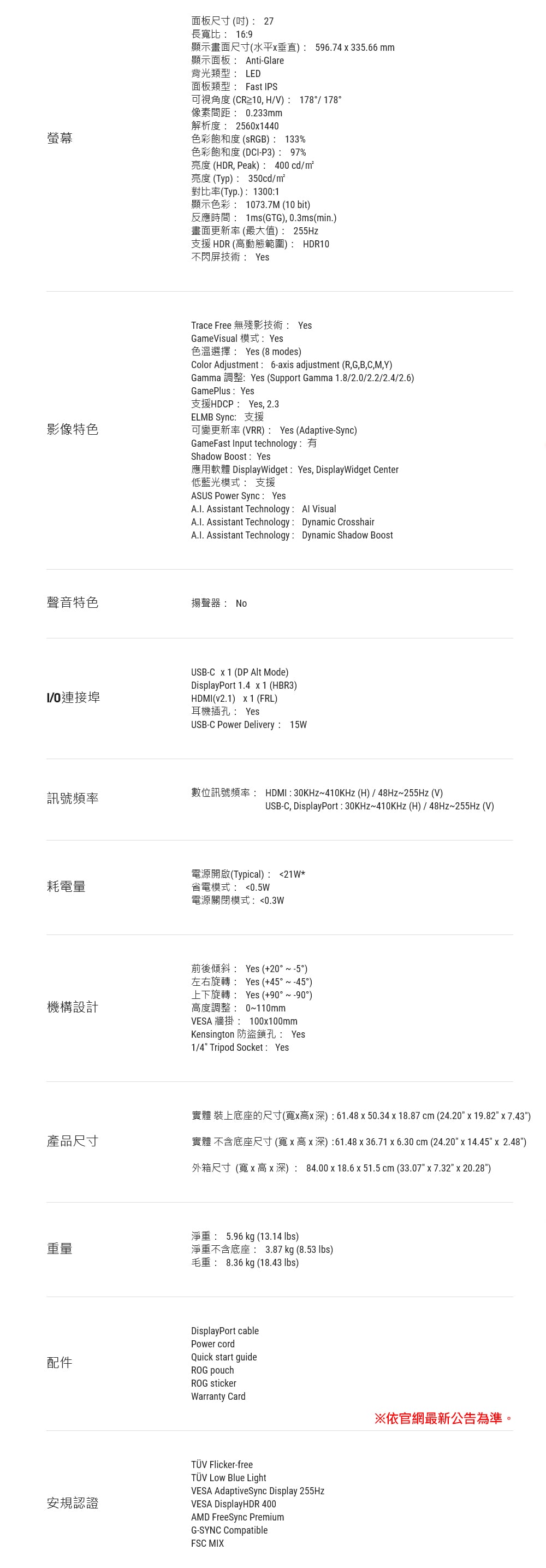 ASUS 華碩 XG27ACMES 27型 IPS電競螢幕