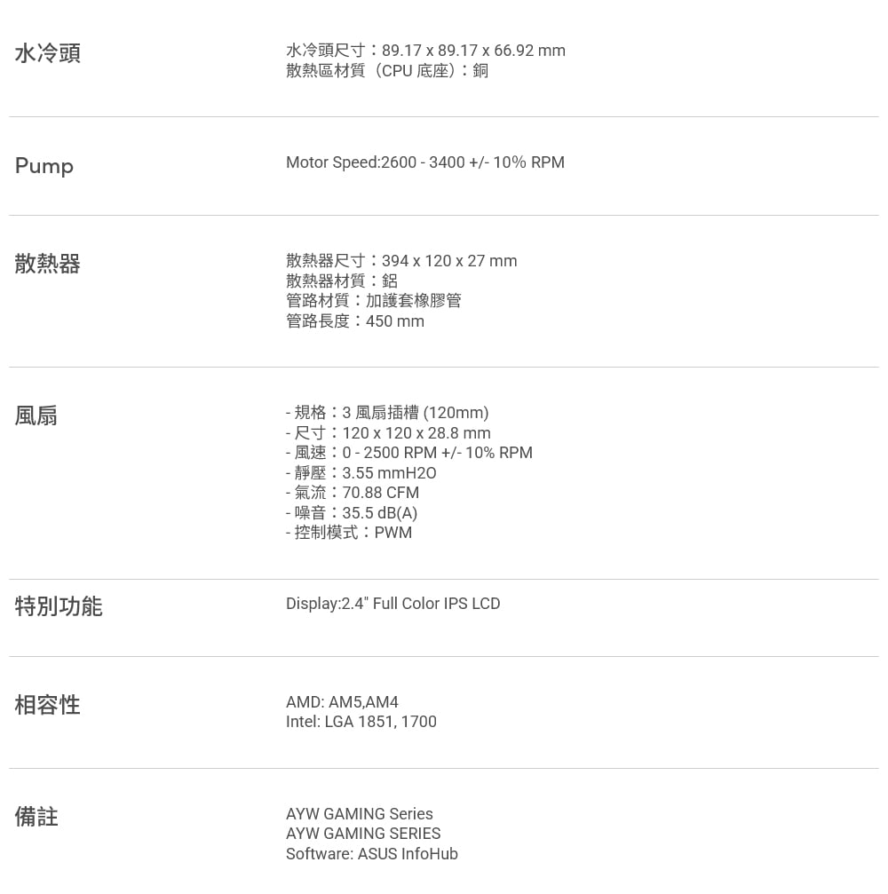 ASUS 華碩 AYW GAMING LC 360 ARGB LCD WHT 水冷散熱器《冷馭白》(6年非人損漏液保換新)