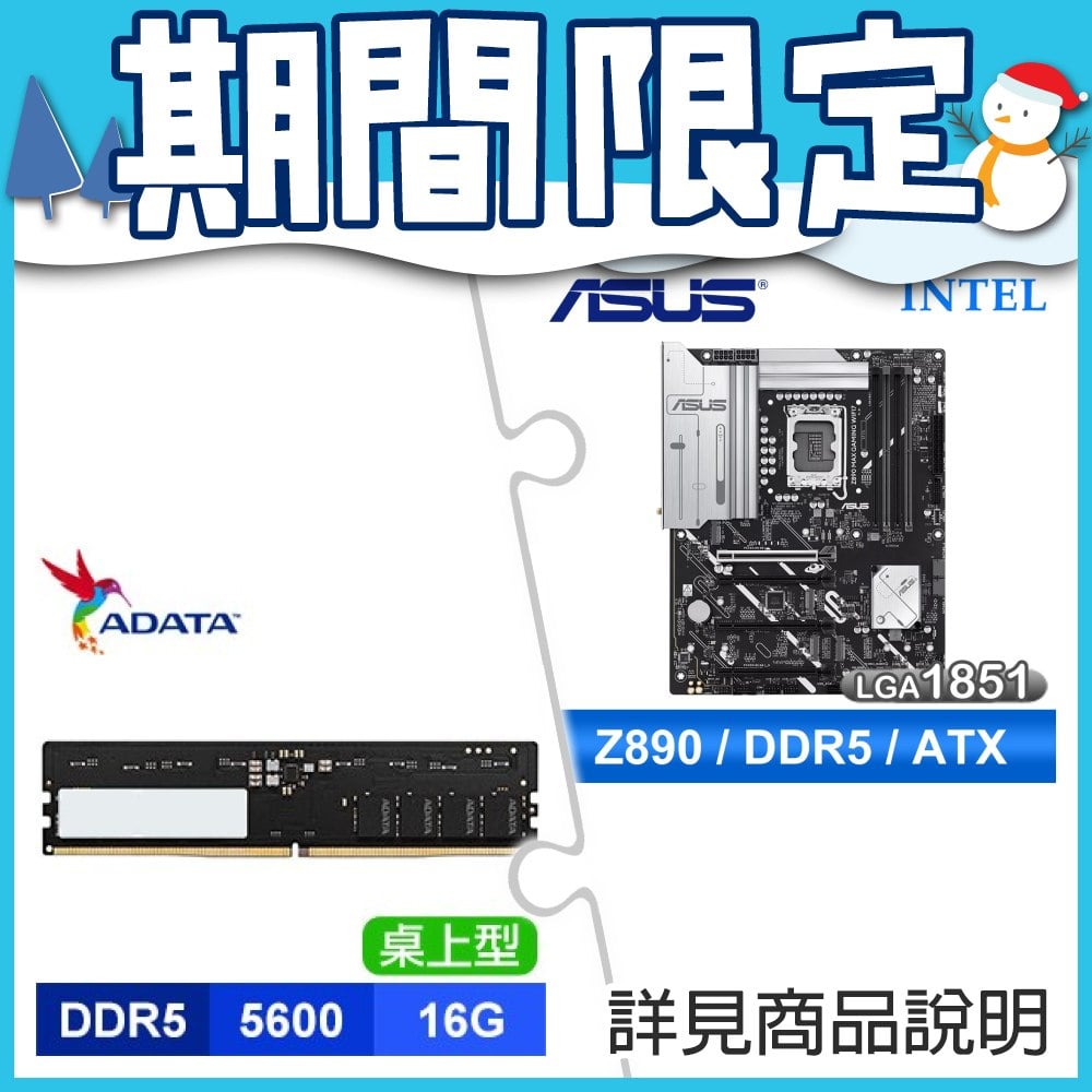 ☆期間限定★ 華碩 Z890 MAX GAMING WIFI7 D5 ATX 主機板+威剛 DDR5-5600 16G 記憶體