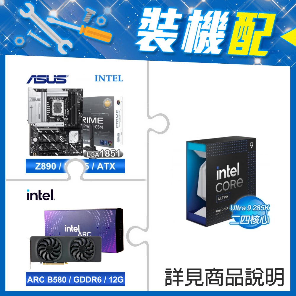 ☆裝機配★ Core U9 285K+華碩 PRIME Z890-P WIFI-CSM D5 ATX主機板+Intel Arc B580 12G 20 Core 顯示卡