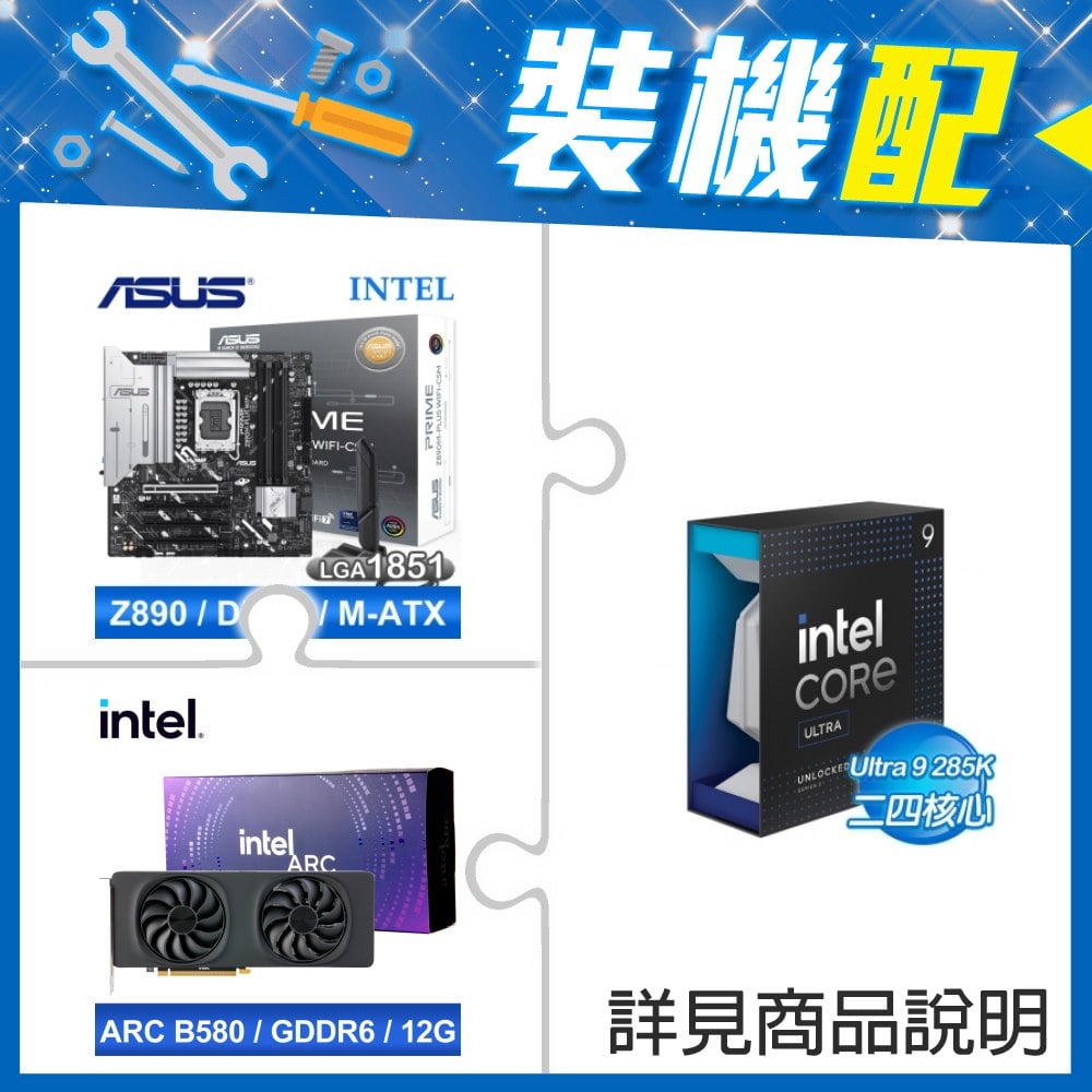 ☆裝機配★ Core U9 285K+華碩 PRIME Z890M-PLUS WIFI-CSM D5 M-ATX主機板+Intel Arc B580 12G 20 Core 顯示卡
