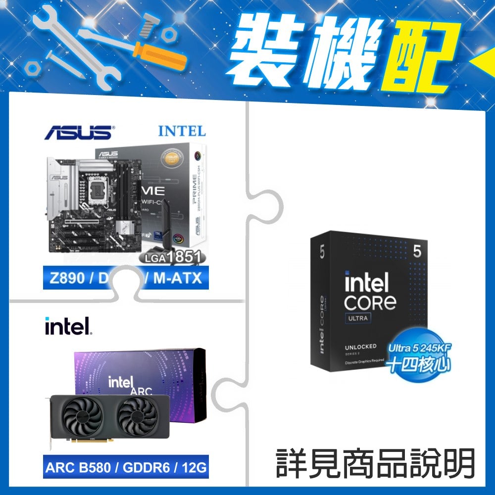 ☆裝機配★ Core U5 245KF+華碩 PRIME Z890M-PLUS WIFI-CSM D5 M-ATX主機板+Intel Arc B580 12G 20 Core 顯示卡