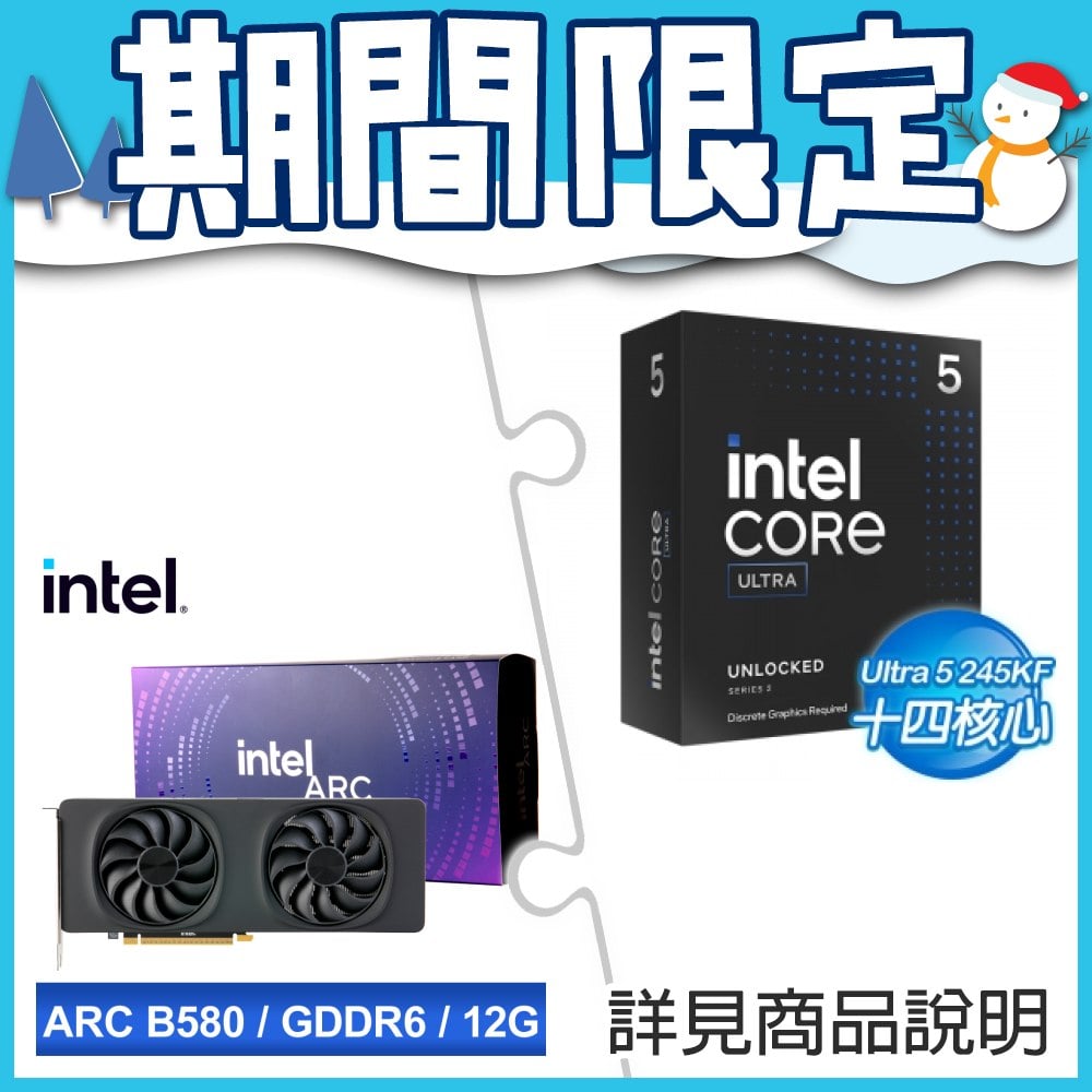☆期間限定★ Intel Core Ultra 5 245KF+Intel Arc B580 12G 20 Core 顯示卡