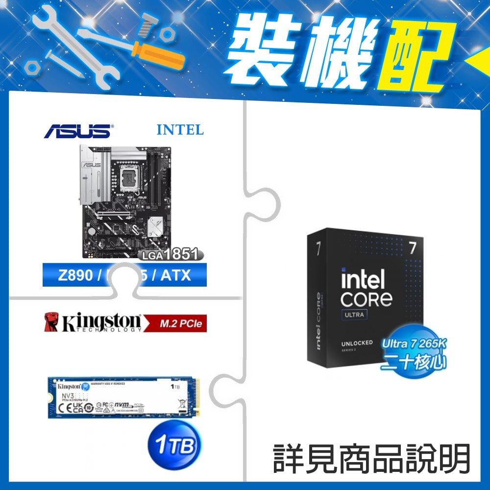 ☆裝機配★ Core U7 265KF+華碩 Z890 MAX GAMING WIFI7 D5 ATX主機板+金士頓 NV3 1TB M.2 PCIe SSD