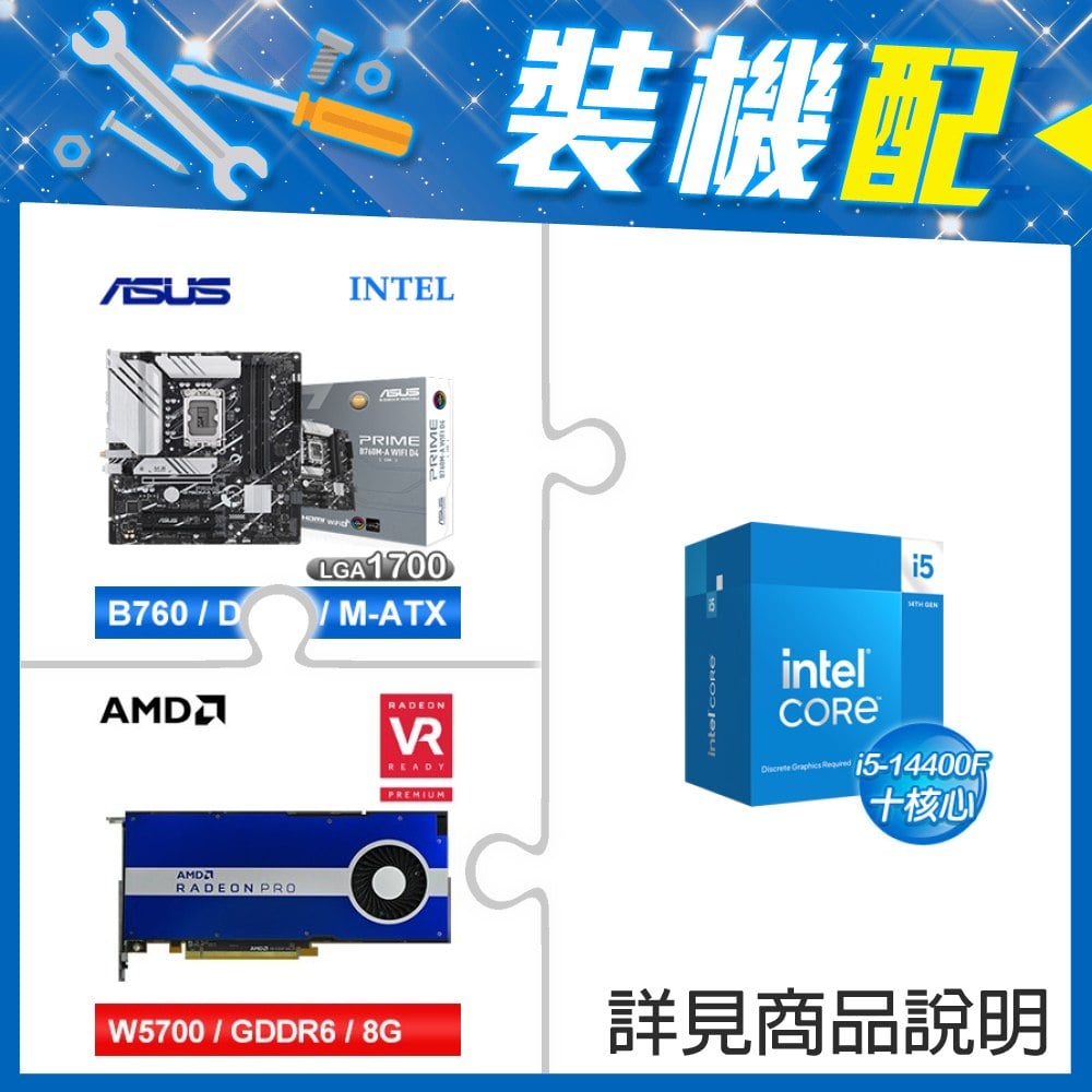 ☆裝機配★ i5-14400F+華碩 PRIME B760M-A WIFI D4-CSM 主機板+AMD RadeonPro W5700 8G 256bit專業繪圖卡