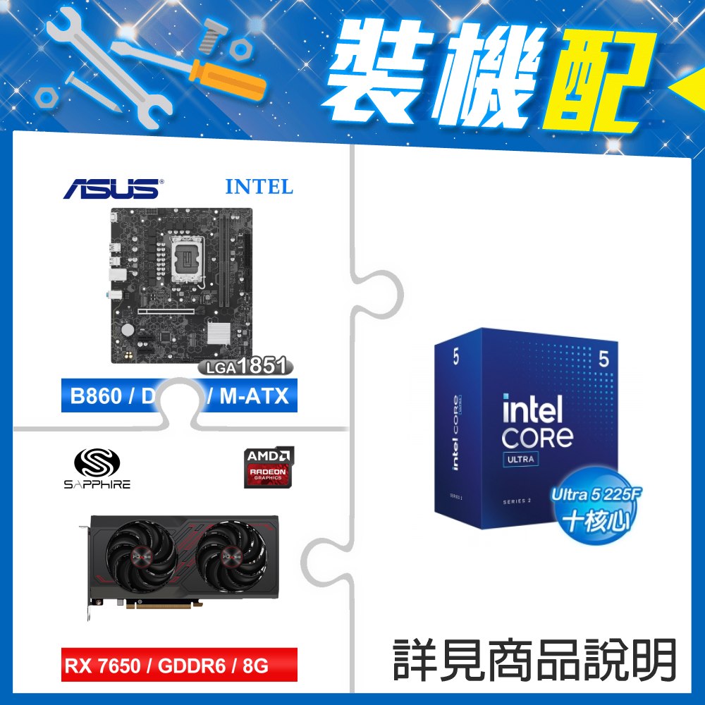 ☆裝機配★ Core U5 225F+華碩 B860M-E-CSM D5 MATX主機板+藍寶石 黑鑽版 RX 7650 GRE GAMING OC 8GB 顯示卡