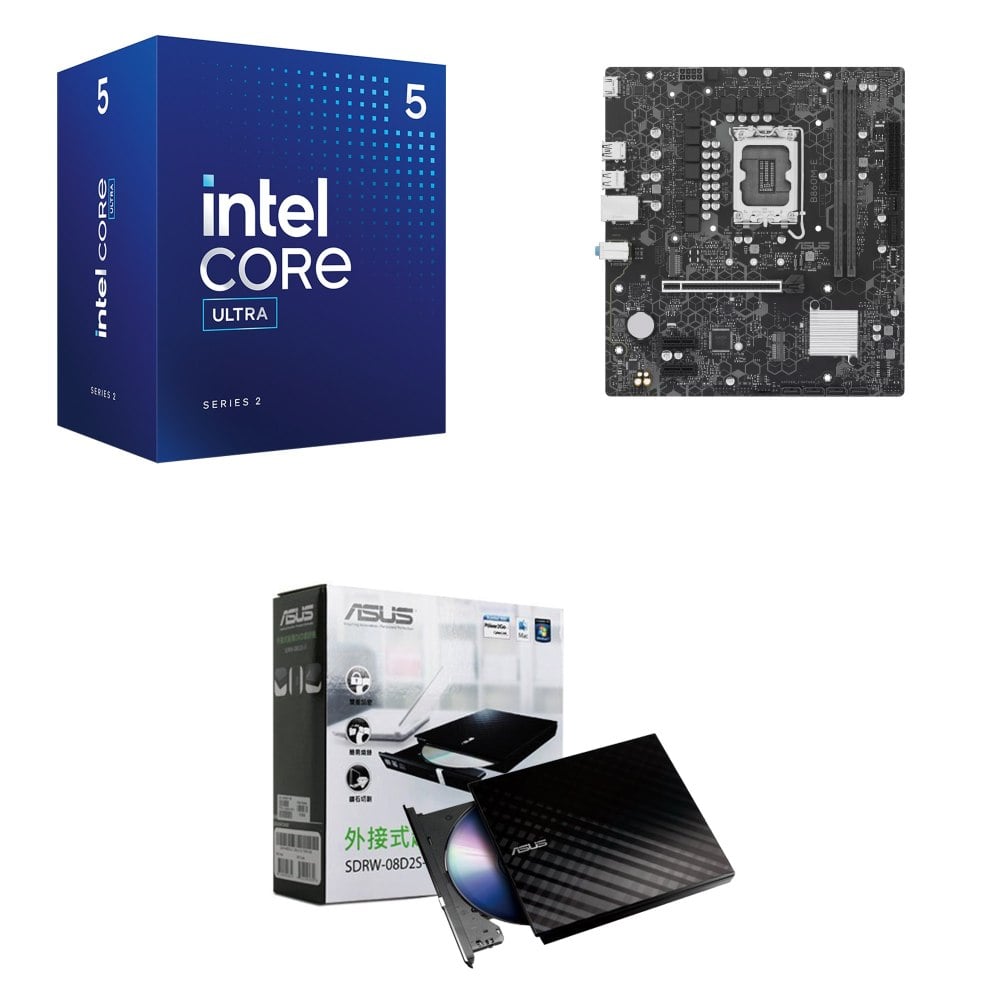 ☆裝機配★ Core U5 235+華碩 B860M-E-CSM D5 MATX主機板+華碩 SDRW-08D2S-U 外接式燒錄機《黑》