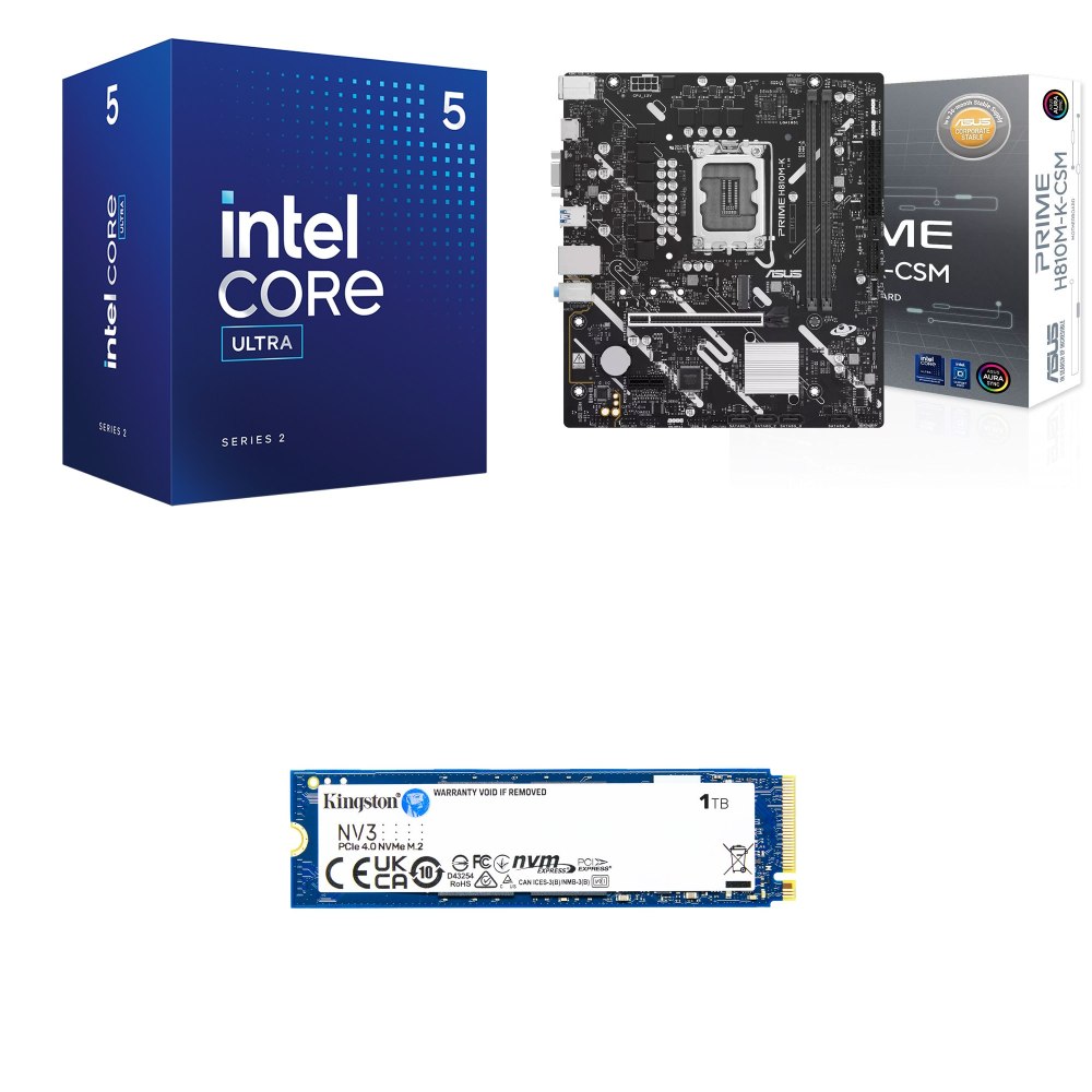 ☆裝機配★ Core U5 225F+華碩 PRIME H810M-K-CSM D5 MATX主機板+金士頓 NV3 1TB M.2 PCIe SSD