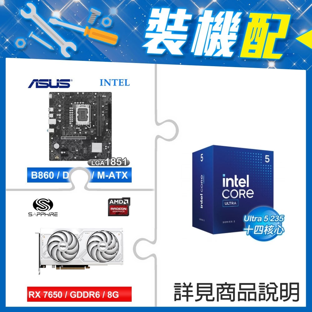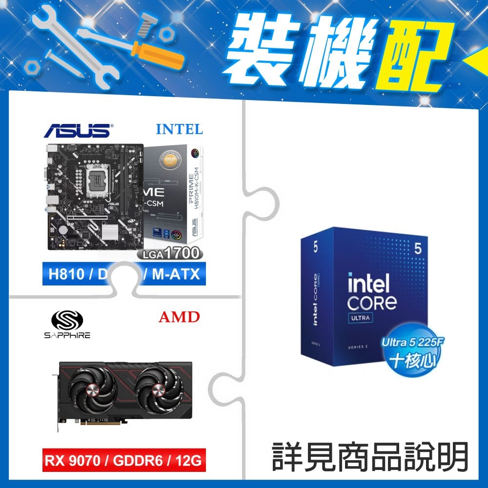 ☆裝機配★ Core U5 225F+華碩 PRIME H810M-K-CSM D5 MATX主機板+藍寶石 黑鑽版 RX 7650 GRE GAMING OC 8GB 顯示卡