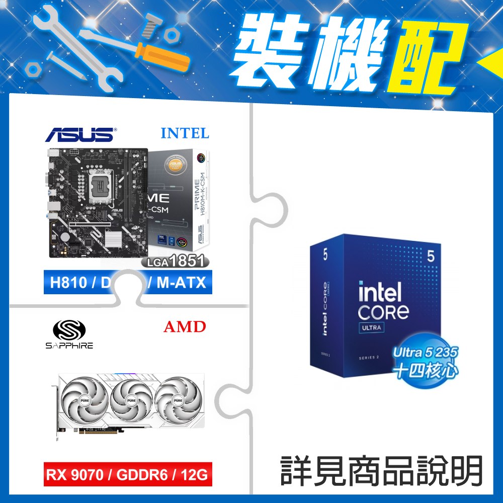 ☆裝機配★ Core U5 235+華碩 PRIME H810M-K-CSM D5 MATX主機板+藍寶石 PULSE 白金版 RX 7650 GRE GAMING 8GB 顯示卡
