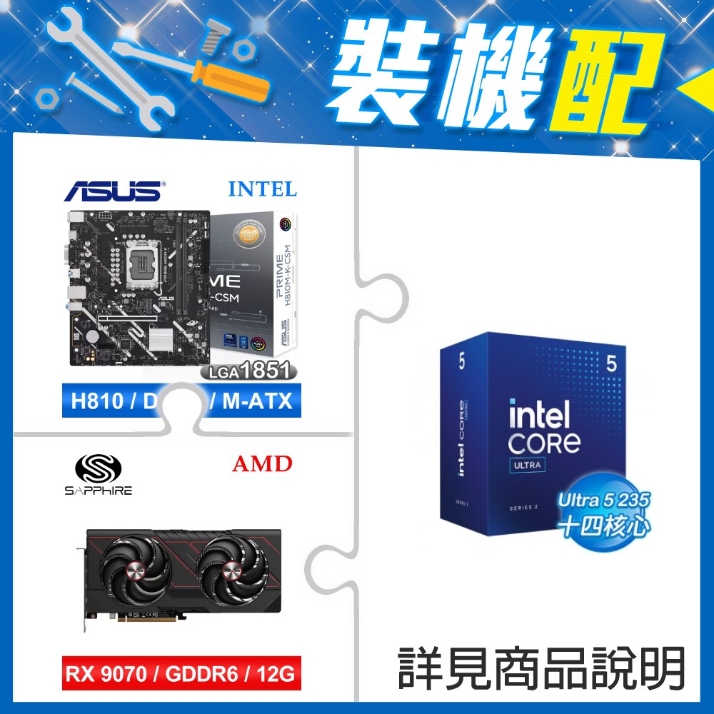 ☆裝機配★ Core U5 235+華碩 PRIME H810M-K-CSM D5 MATX主機板+藍寶石 PURE 極地 RX 9070 XT GAMING OC 16GB 顯示卡