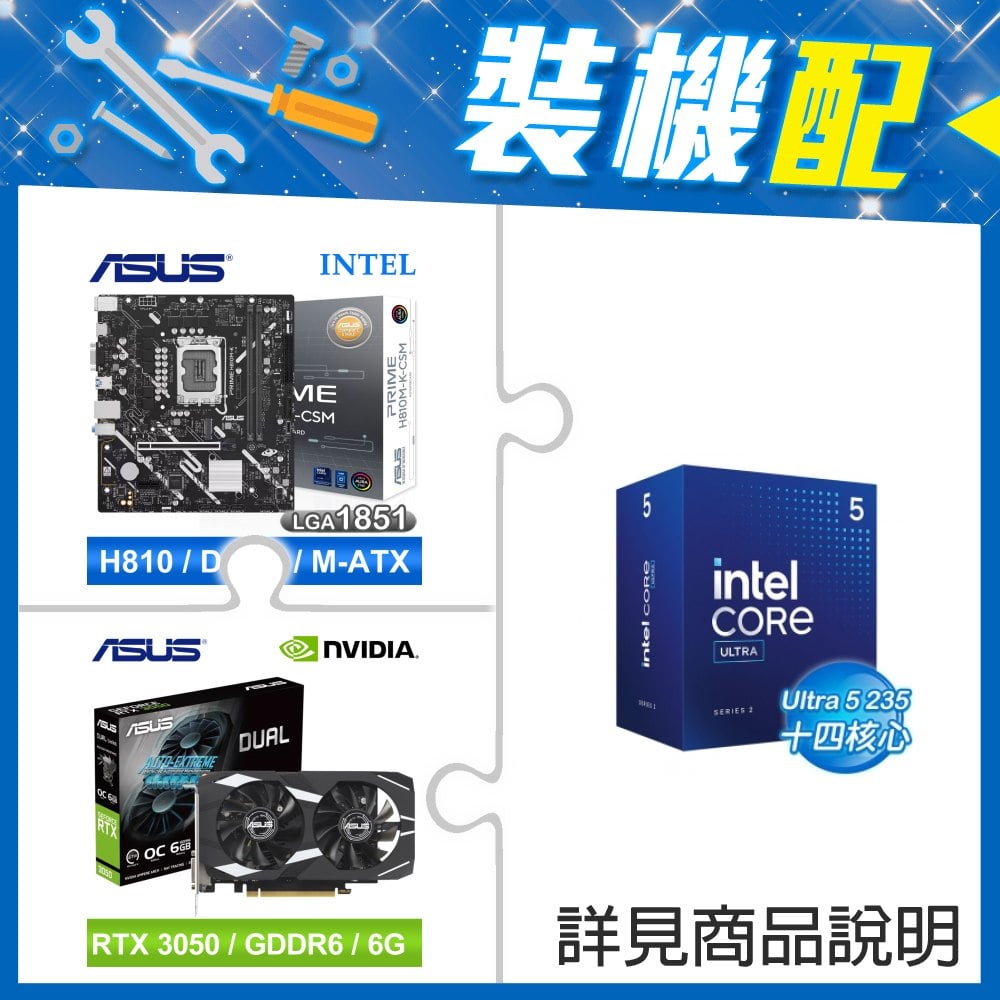 ☆裝機配★ Core U5 235+華碩 PRIME H810M-K-CSM D5 MATX主機板+華碩 DUAL-RTX3050-O6G 顯示卡
