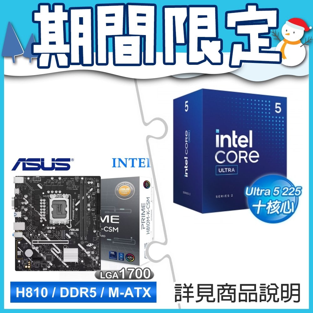 ☆期間限定★ Intel Core Ultra 5 225+華碩 PRIME H810M-K-CSM D5 MATX 主機板 ★送華碩 CERBERUS 光學電競滑鼠