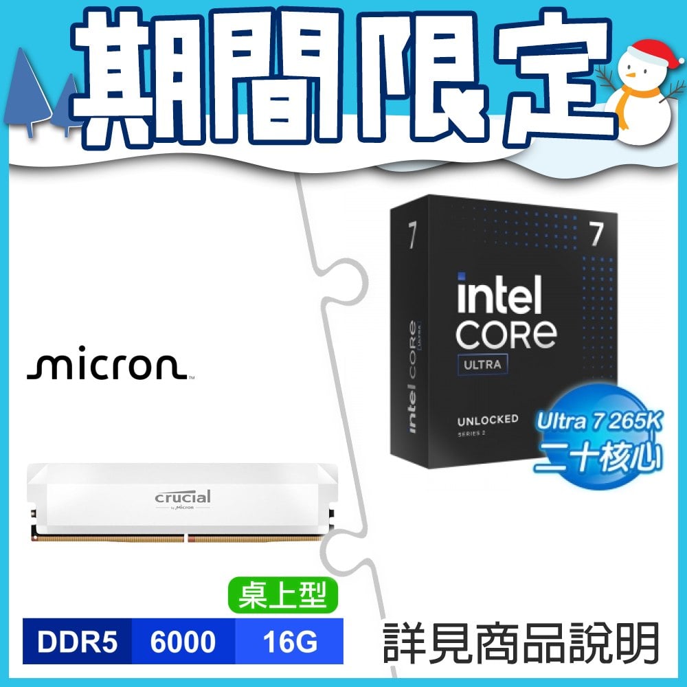 ☆期間限定★ Intel Core Ultra 7 265K+美光 Crucial PRO DDR5 6000 16G CL36 白 記憶體